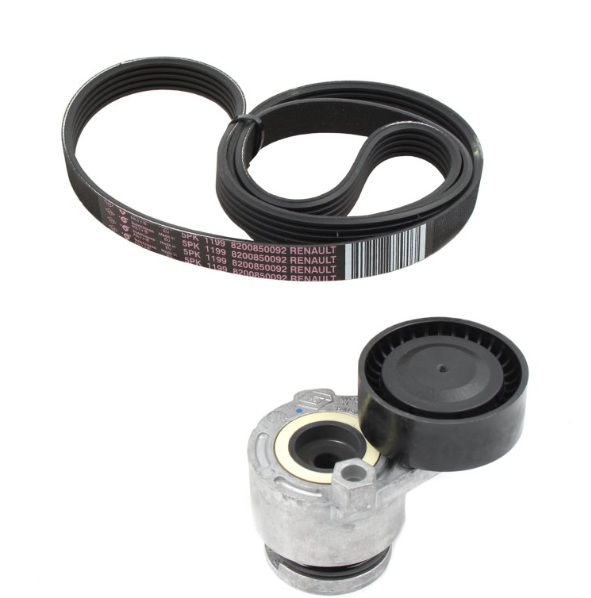 Der originale Renault Keilrippenriemensatz mit der Teilenummer 7701476475 enthält alle notwendigen Komponenten für einen fachgerechten und vollständigen Austausch des Zahnriemensystems. Der Satz stellt die korrekte Synchronisation zwischen Kurbel- und Nockenwelle sicher und schützt den Motor zuverlässig vor Schäden, die durch einen verschlissenen oder gerissenen Riemen entstehen können. Alle Bestandteile entsprechen den Renault-Werksvorgaben hinsichtlich Materialqualität, Passgenauigkeit und Haltbarkeit.